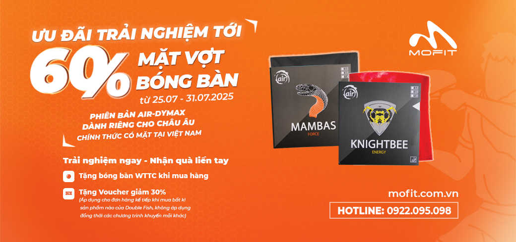 Sau khi tạo tiếng vang trên các diễn đàn bóng bàn quốc tế, Air-dymax chính thức ra mắt người chơi Việt Nam lần đầu tiên với ưu đãi không thể hấp dẫn hơn: Ưu đãi trải nghiệm đến 60% trong thời gian diễn ra giải đấu.