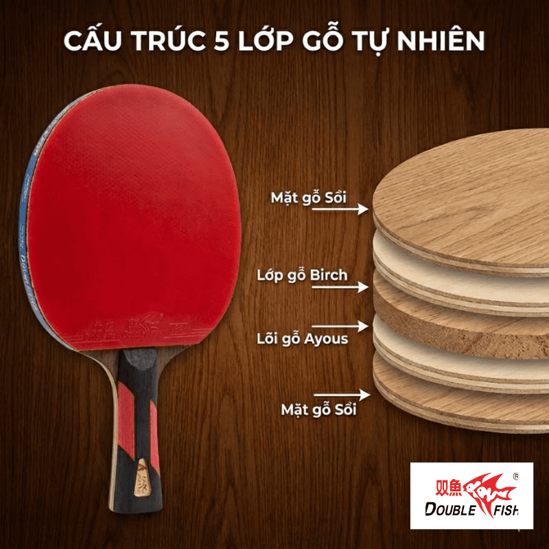 Chất liệu cốt vợt: 5 Lớp gỗ tự nhiên cao cấp.